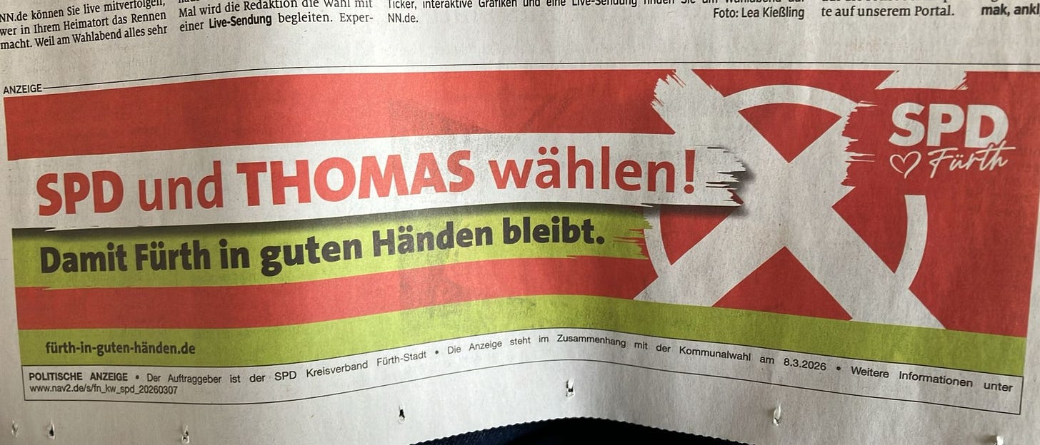 Ich habe es in meinem letzten Beitrag, in dem es um die Ergebnisse der Kommunalwahl 2026 in Fürth und das politische Bild hinter den Zahlen ging (lesen lohnt sich!)…